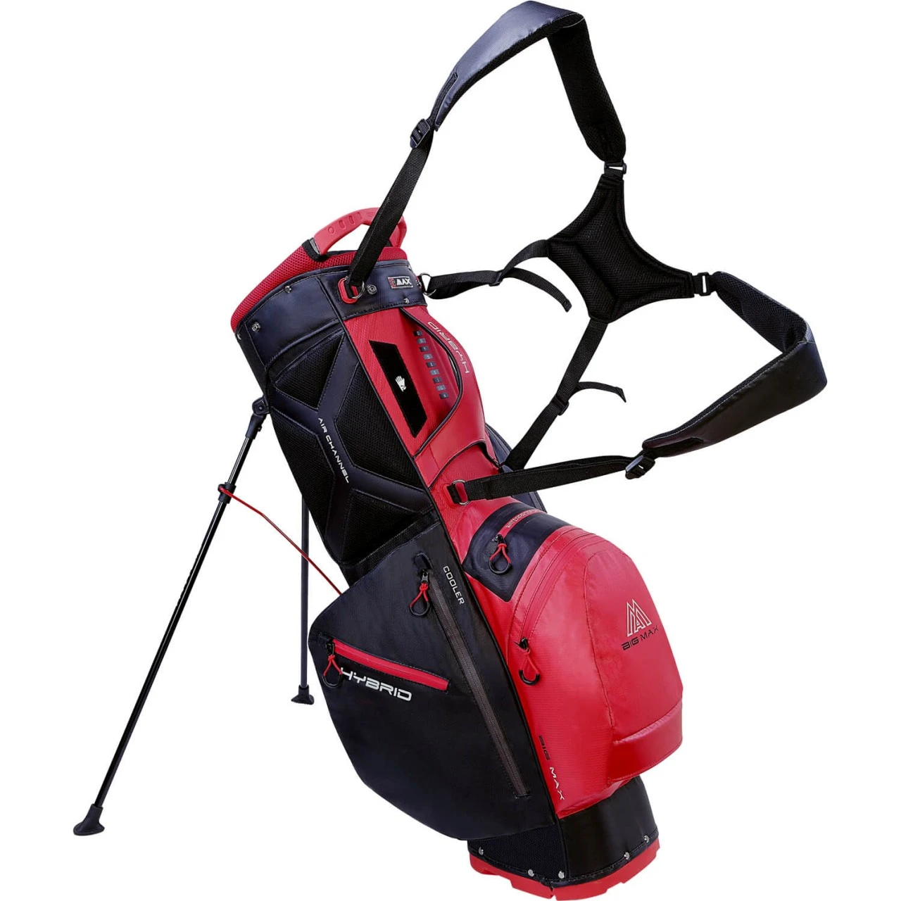 Der gepolsterte Tragegurt ist individuell einstellbar, sodass das Bag bequem zu tragen ist. Air Channels sorgen für eine erhöhte Luftzirkulation. Dank Griffen am Top, an der Oberseite und im unteren Bereich lässt sich das Bag auch ohne Tragegurt leicht handhaben. Außerdem ist die Basis des Bags so konzipiert, dass es auch auf Trolleys von Big Max transportiert werden kann. Möglich macht dies der Leg Lock Mechanismus.