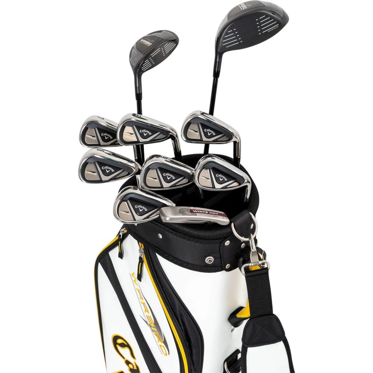 Das neue Callaway Warbird Golfset ist mit Schlägern für unglaubliche Weiten, maximale Performance und Fehlerverzeihung ausgestattet. Die Schläger sind darauf ausgerichtet, eine außergewöhnliche Weite zu erreichen und gleichzeitig eine hohe Fehlerverzeihung zu realisieren. Die Eisen sorgen für einen höheren Abflugwinkel, mehr Weite und einen größeren Sweetspot. Die Fairwayhölzer verfügen über etwas tiefere Schlagflächen und wurden designtechnisch dahingehend optimiert, länger und fehlerverzeihender zu sein. Auch der Driver punktet mit fortschrittlicher Technologie: Schläge, die nicht mittig getroffen werden, erzielen ebenfalls hohe Ballgeschwindigkeiten und außerordentliche Weiten. Der Premium Odyssey Putter ist ein 330 Mallet-Putter, der sich einfach ausrichten lässt und dank des Urethan-Einsatzes ein großartiges Spielgefühl erzeugt.