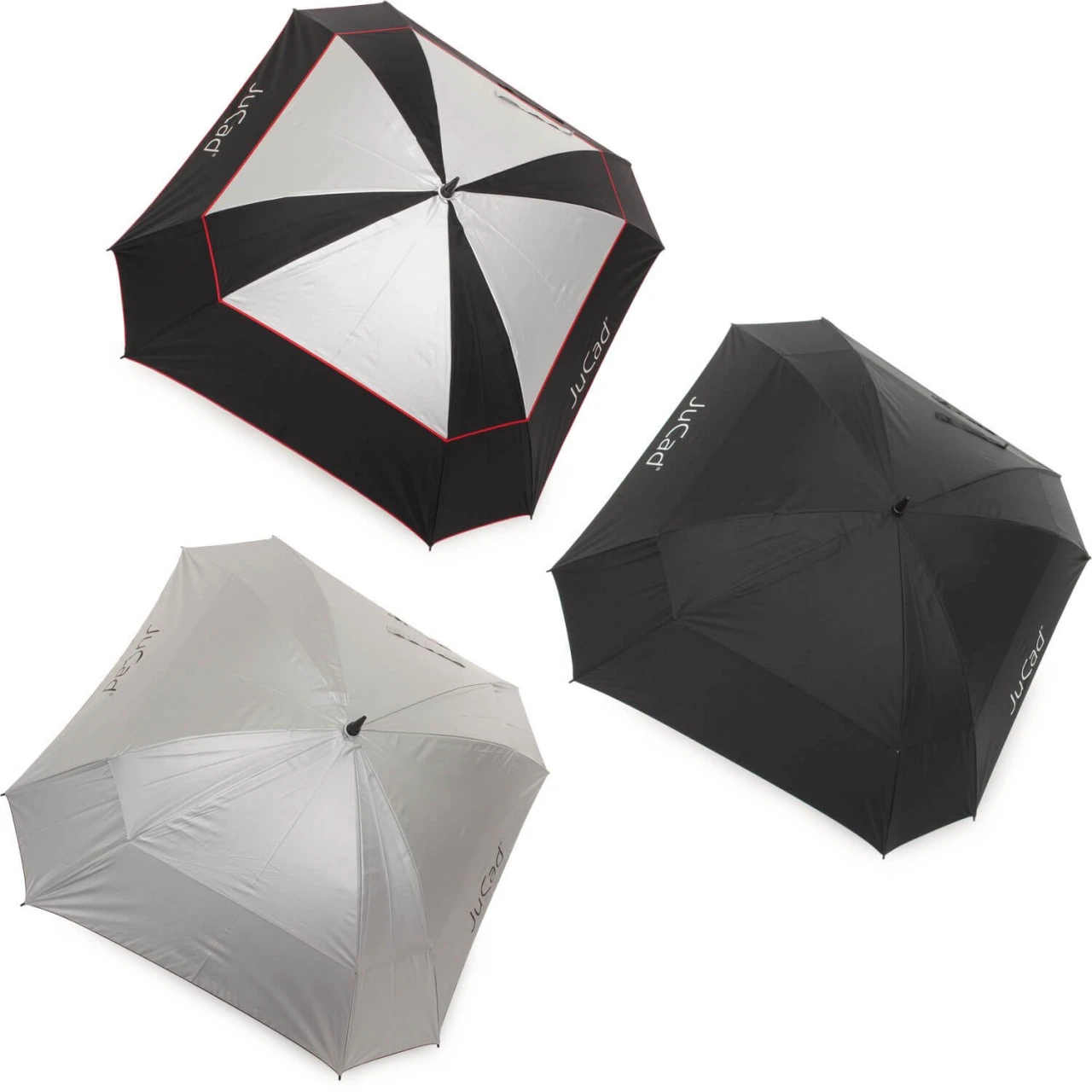 Sehr großer Golfschirm von JuCad. Der doppellagige Schirm ist äußerst stabil und hält auch starken Windböen stand. Im Griff ist eine extra Halterung integriert, um den Schirm einfach an einem JuCad Trolley zu befestigen. Toller Eyecatcher: Ein Golfball lässt sich zum Schutz drüber stülpen. Kompatibel mit allen JuCad Trolleys. Inklusive Schutzhülle.