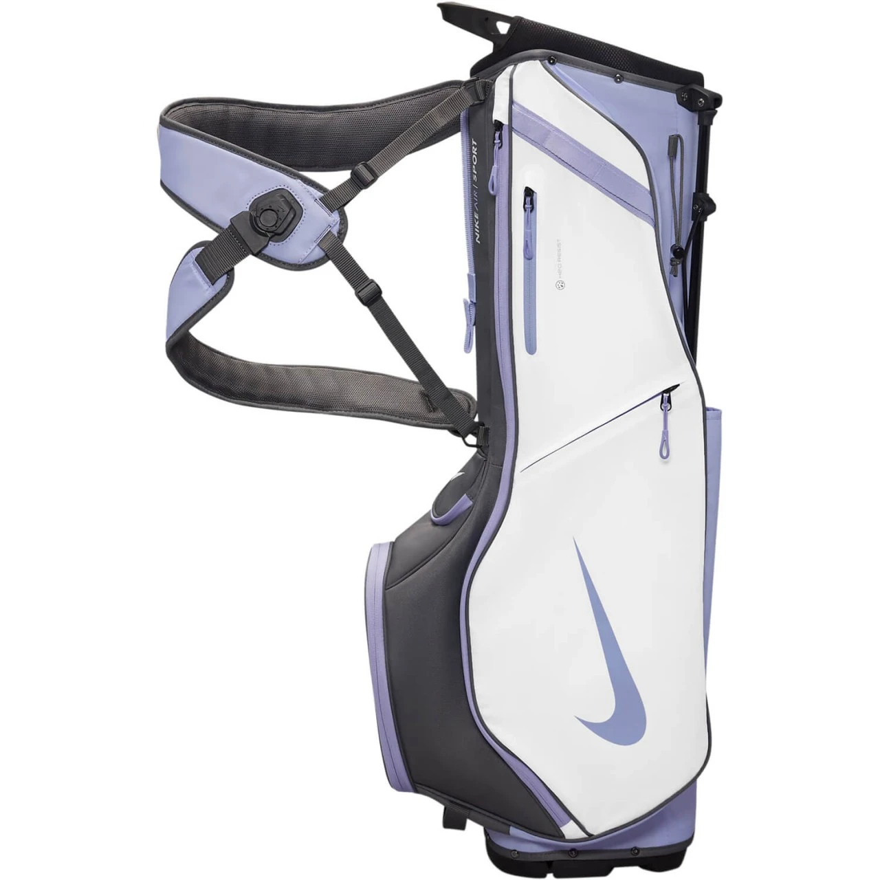 Genieße Ihren Tag auf dem Grün mit der Nike Air Sport 2 Golftasche. Der verstellbare Riemen sorgt für ein ausgewogenes Tragegefühl, damit du alle 18 Löcher bequem spielen kannst. Bei nassem Wetter schützt die Regenhaube vor den Elementen.